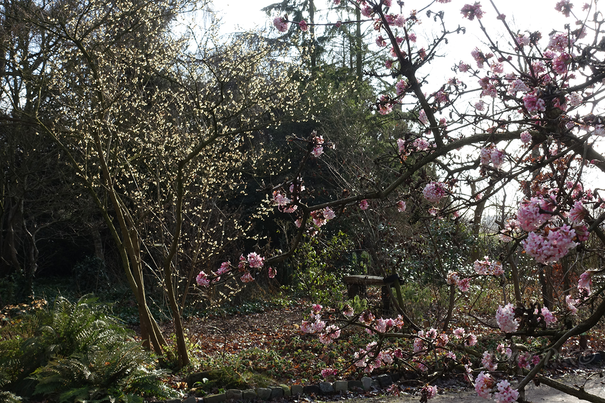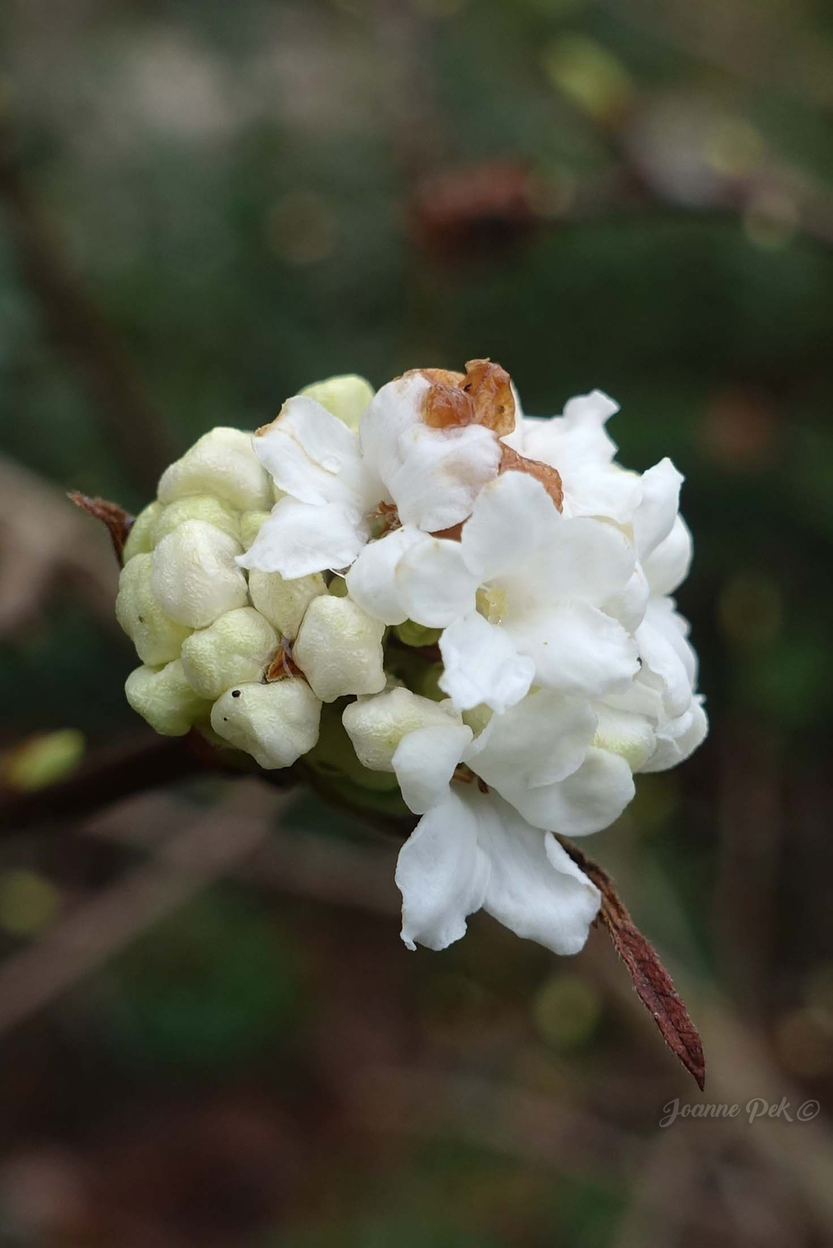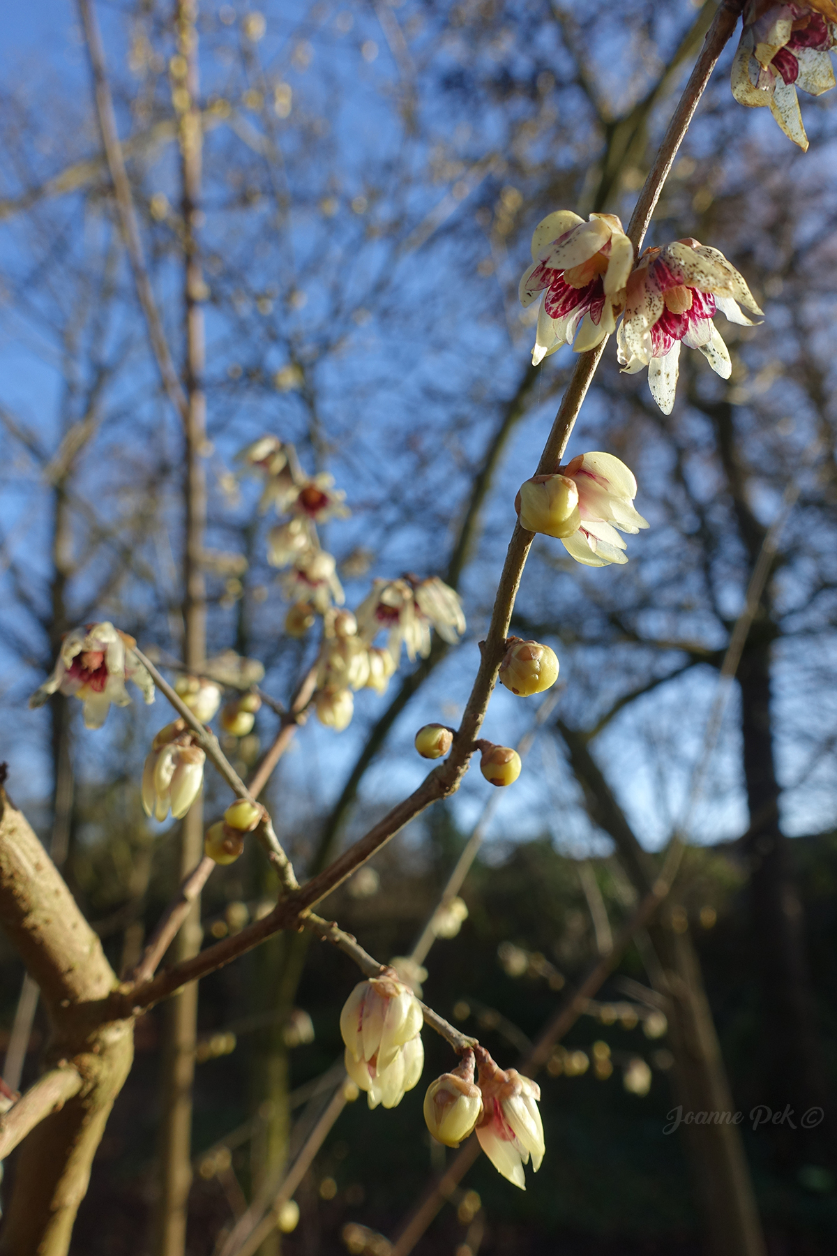 Drie winterbloeiers fleuren januari op met hun heerlijke geur: Viburnum bodnantense ‘Dawn’, Chimonanthus praecox en Lonicera x purpussi.