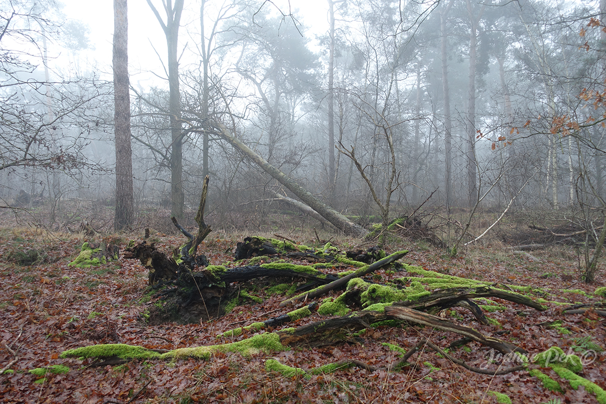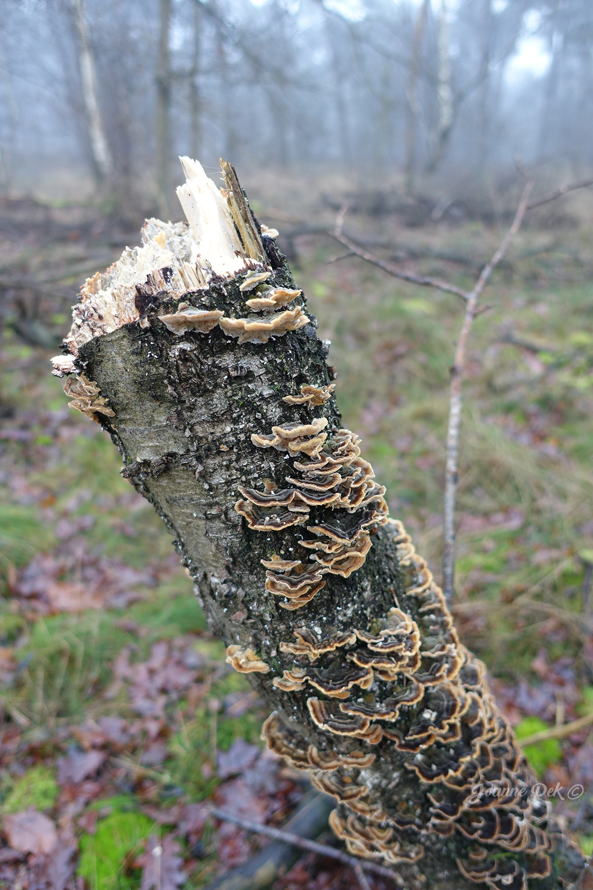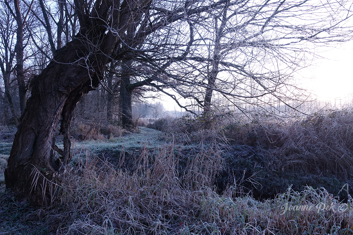 Hazelaars, berken en een hortensia vangen het zonlicht in de winter.