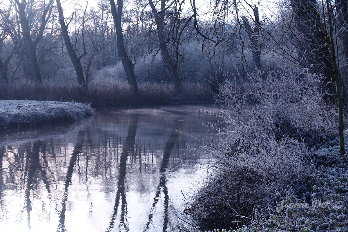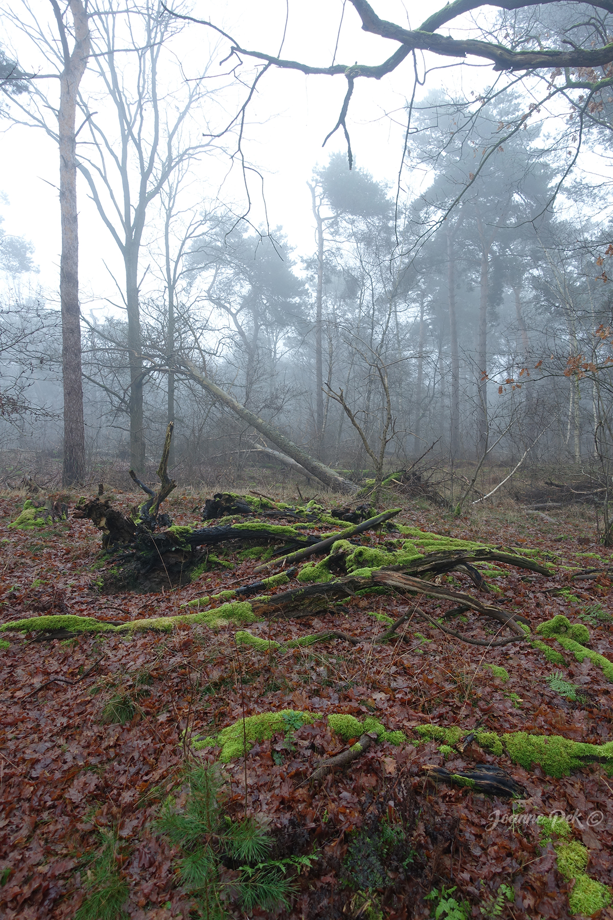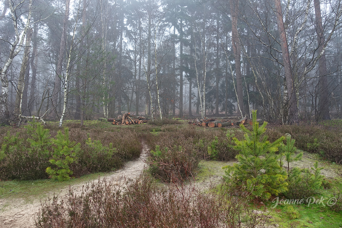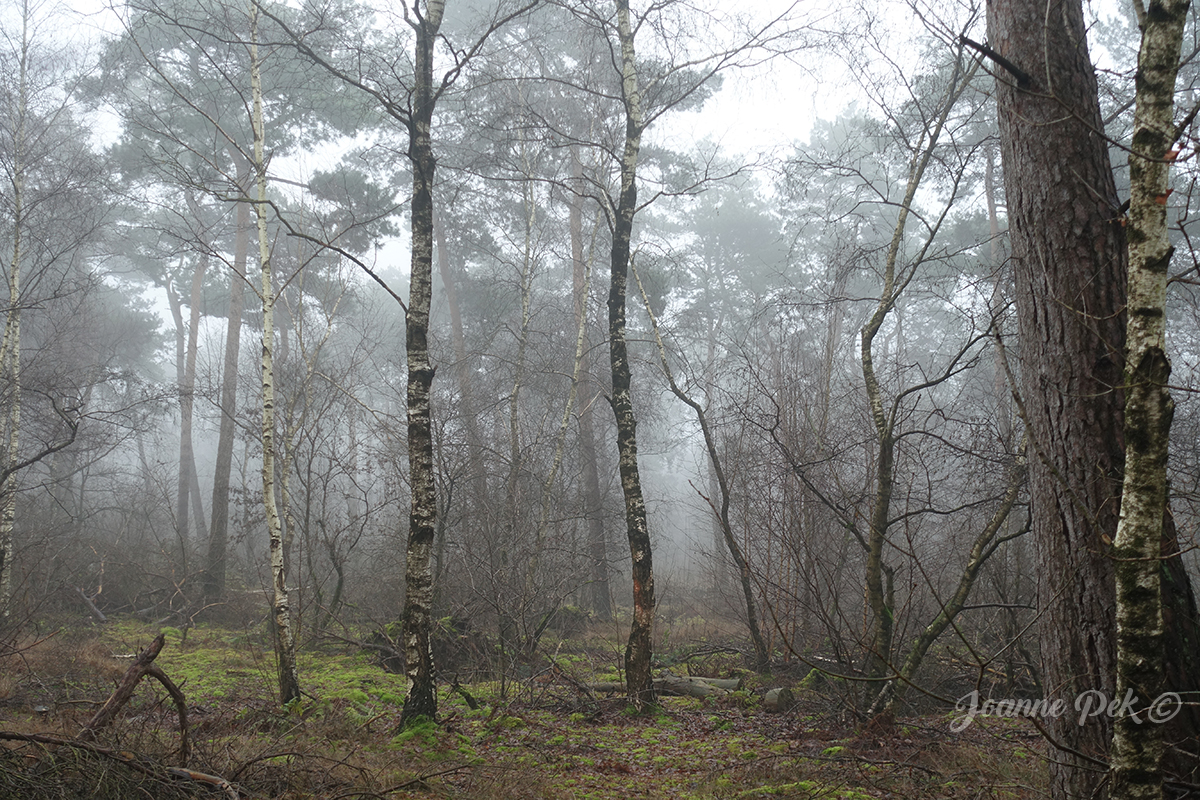 Hazelaars, berken en een hortensia vangen het zonlicht in de winter.