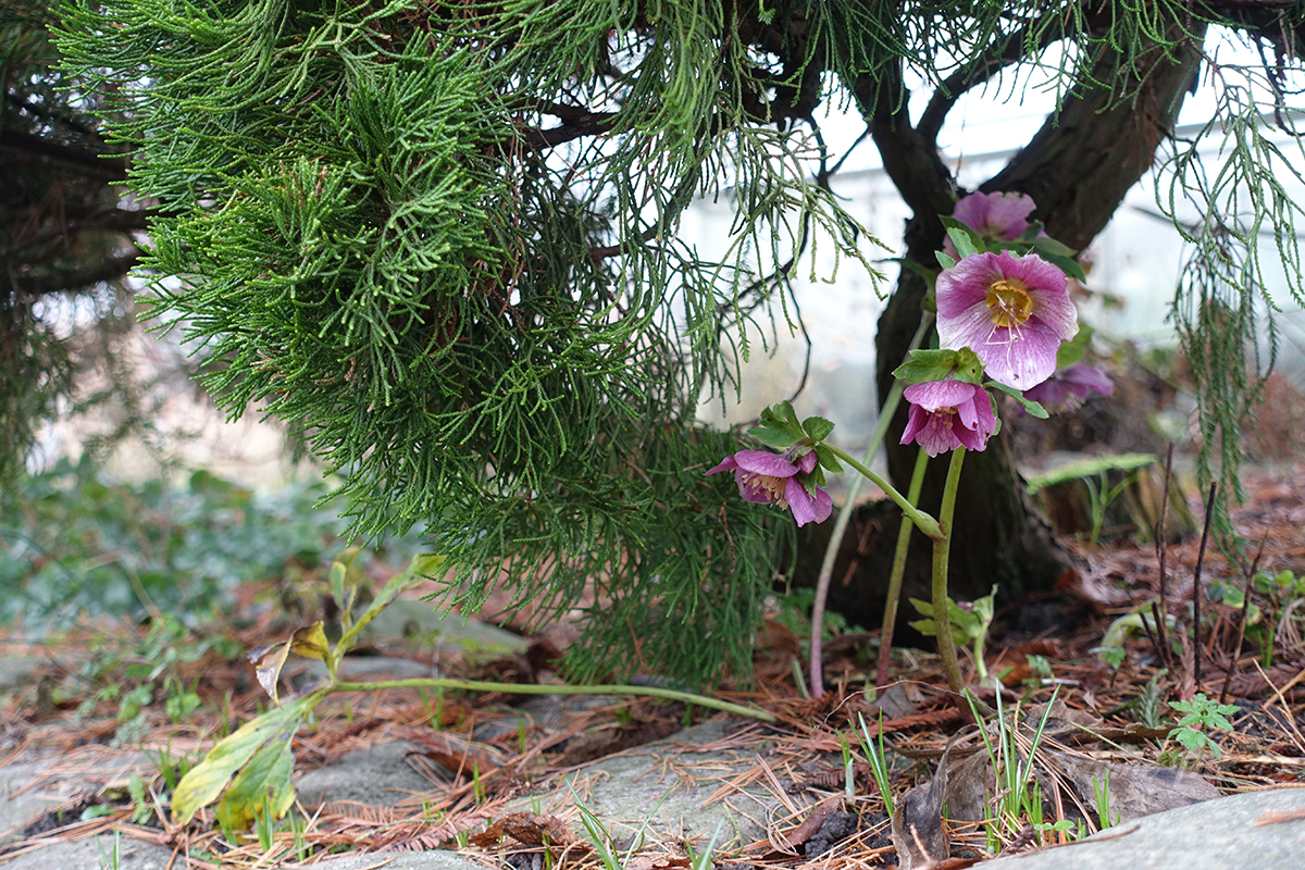 Het is verrassend hoe groen de rotstuin in de winter is.